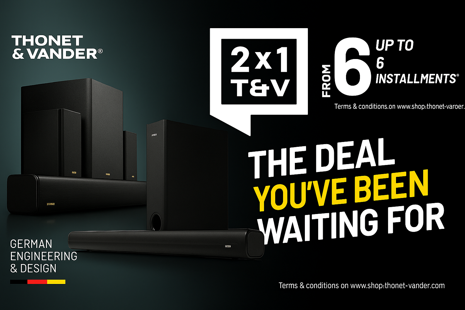 In addition to the 2x1 deal, you can also take advantage of an exclusive benefit: pay in 6 installments with a 10% discount coupon when paying by card or bank transfer.A promo designed so no one misses out on the true German power of sound.